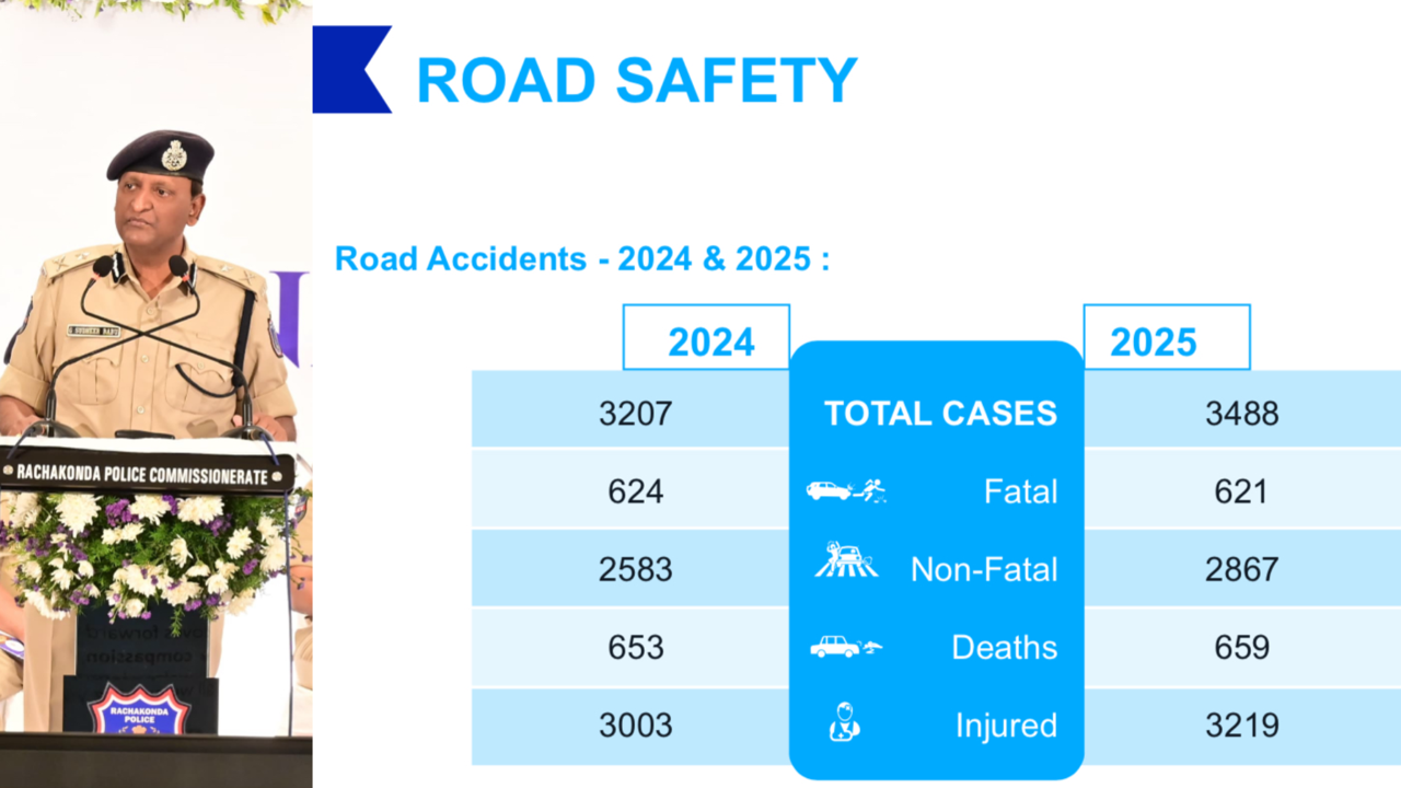 Rachakonda Records Around 7,500 Traffic Violations and Nearly Two Accident Deaths Every Day in 2025